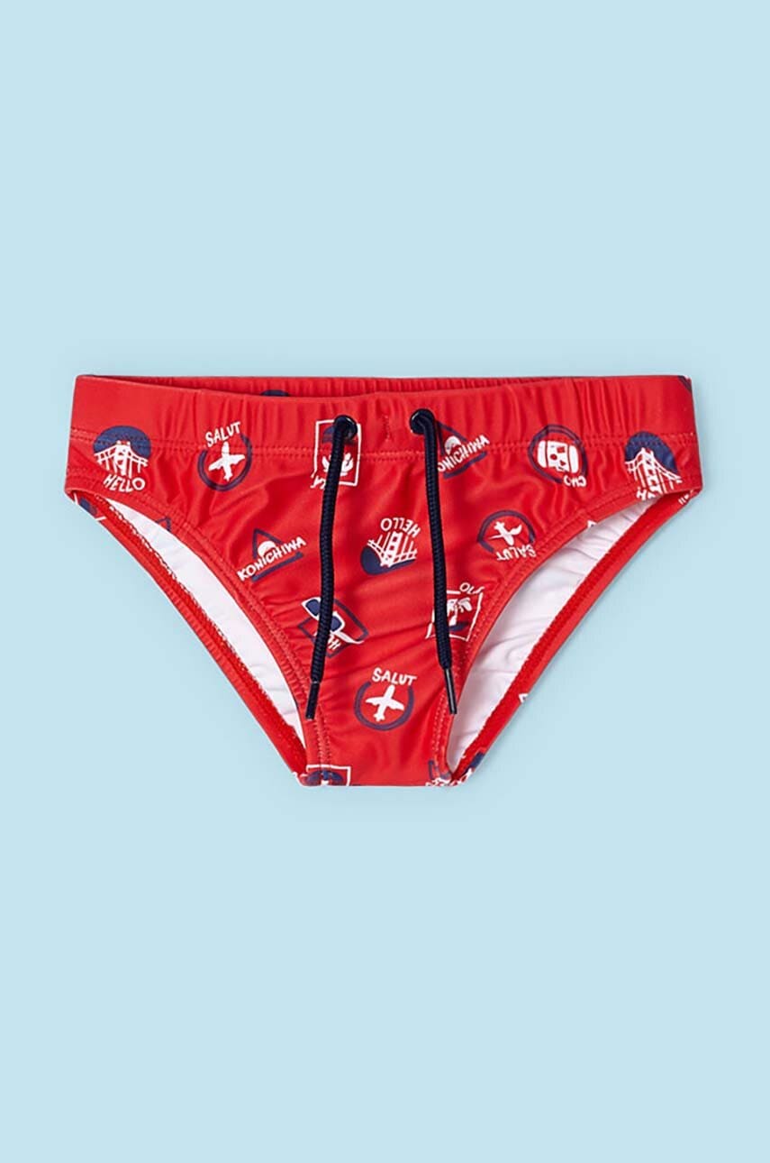 Costum de baie copii din colectia Mayoral. Model confectionat din tricot subțire, elastic.