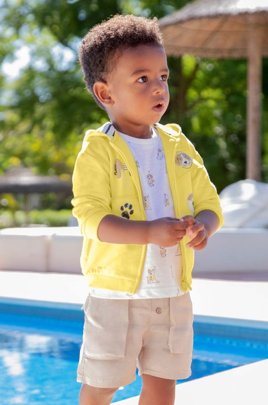 Pantaloni scurti bebe din colectia Mayoral. Model confectionat din material neted.