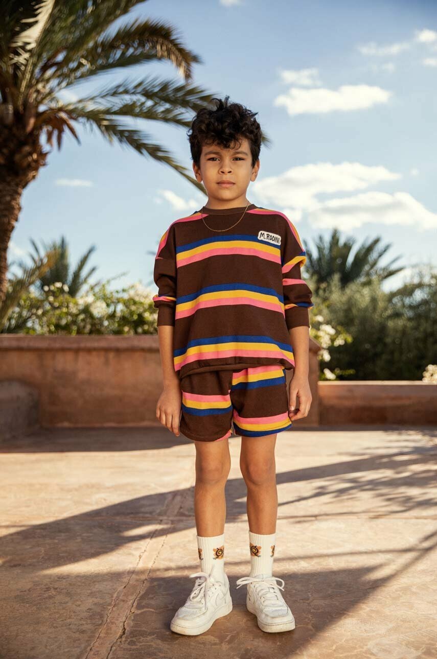 Pantaloni scurti copii din colectia Mini Rodini. Model confectionat din tricot. Material extrem de confortabil, realizat din fibre naturale.