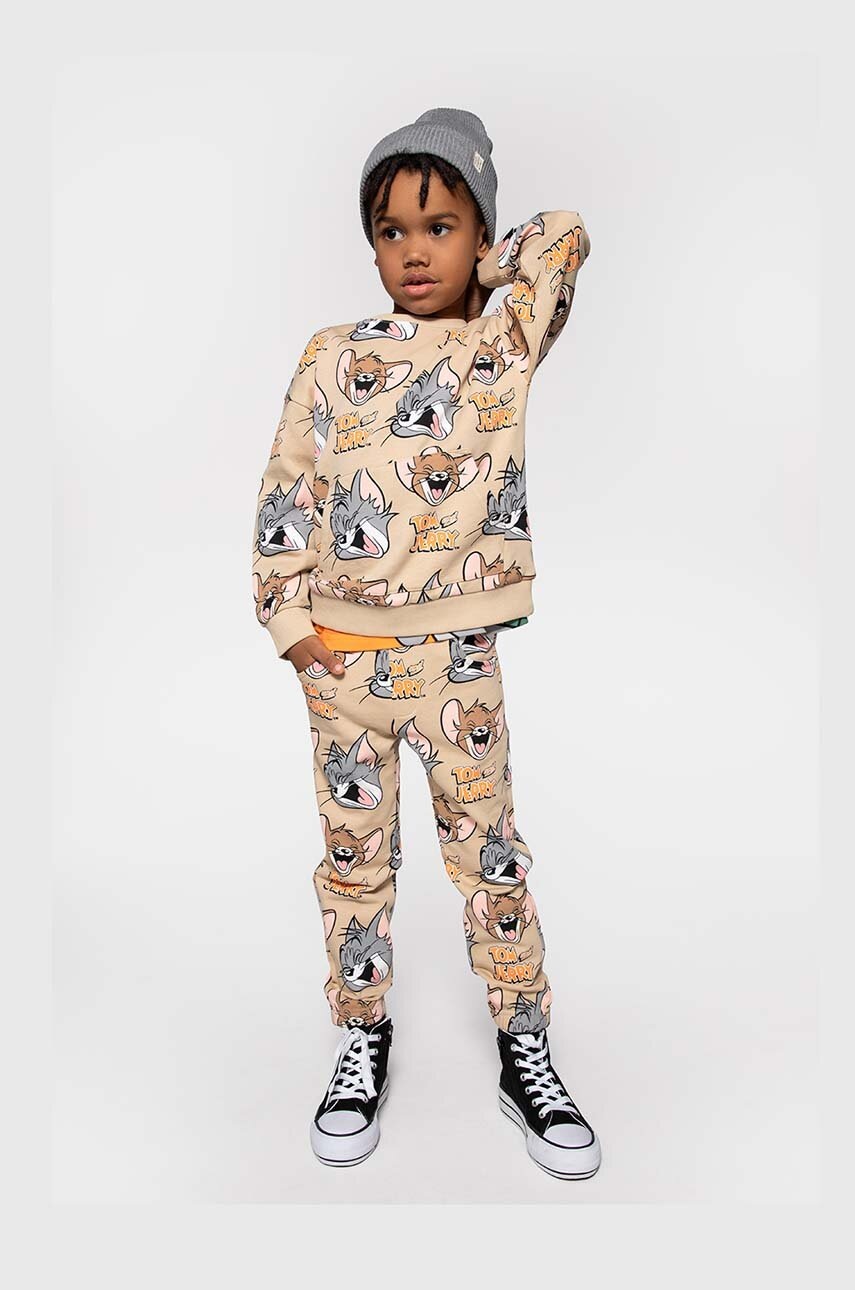 Coccodrillo pantaloni de trening din bumbac pentru copii culoarea bej, modelator