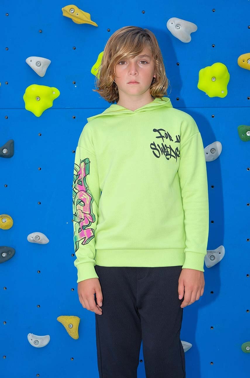 – Dress Safely! Produsul nu contine substante chimice periculoase (cum ar fi pigmenti cancerigeni sau alergenici, ftalati, formaldehida sau metale grele). – Dress Safely! Produsul nu contine elemente periculoase, detasabile sau prea lungi. – Jogger fit. – Elastic in talie cu snururi. – Model cu buzunare glisante. – Picioarele finisate cu manseta. – Reglare velcro in partea inferioara a piciorului. – Model cu imprimeu. – Material tricot flexibil si subtire. – Latimea in talie: 26 cm. – Latimea in solduri: 40 cm. – Inaltimea taliei: 25 cm. – Latimea in partea de jos: 12 cm. – Latimea piciorului: