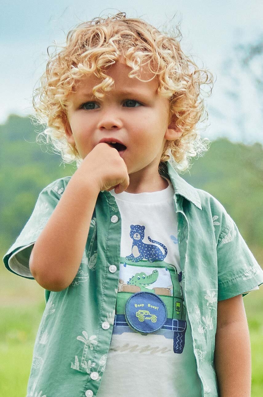 Mayoral tricou din bumbac pentru bebelusi culoarea bej, cu imprimeu