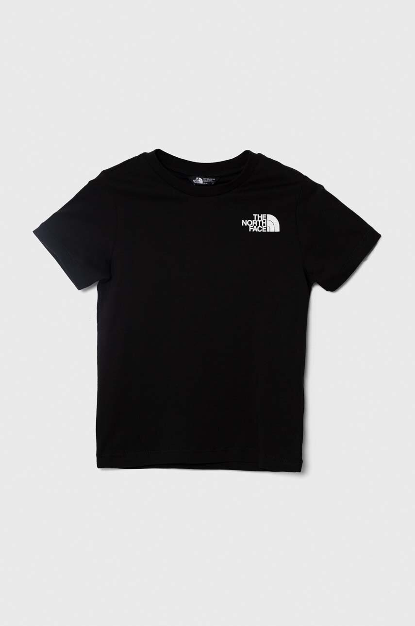 The North Face tricou de bumbac pentru copii REDBOX TEE (BACK BOX GRAPHIC) culoarea negru, cu imprimeu