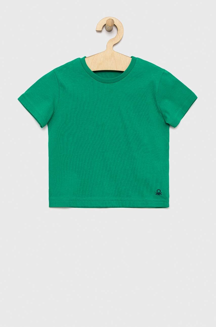 United Colors of Benetton tricou de bumbac pentru copii culoarea verde, neted