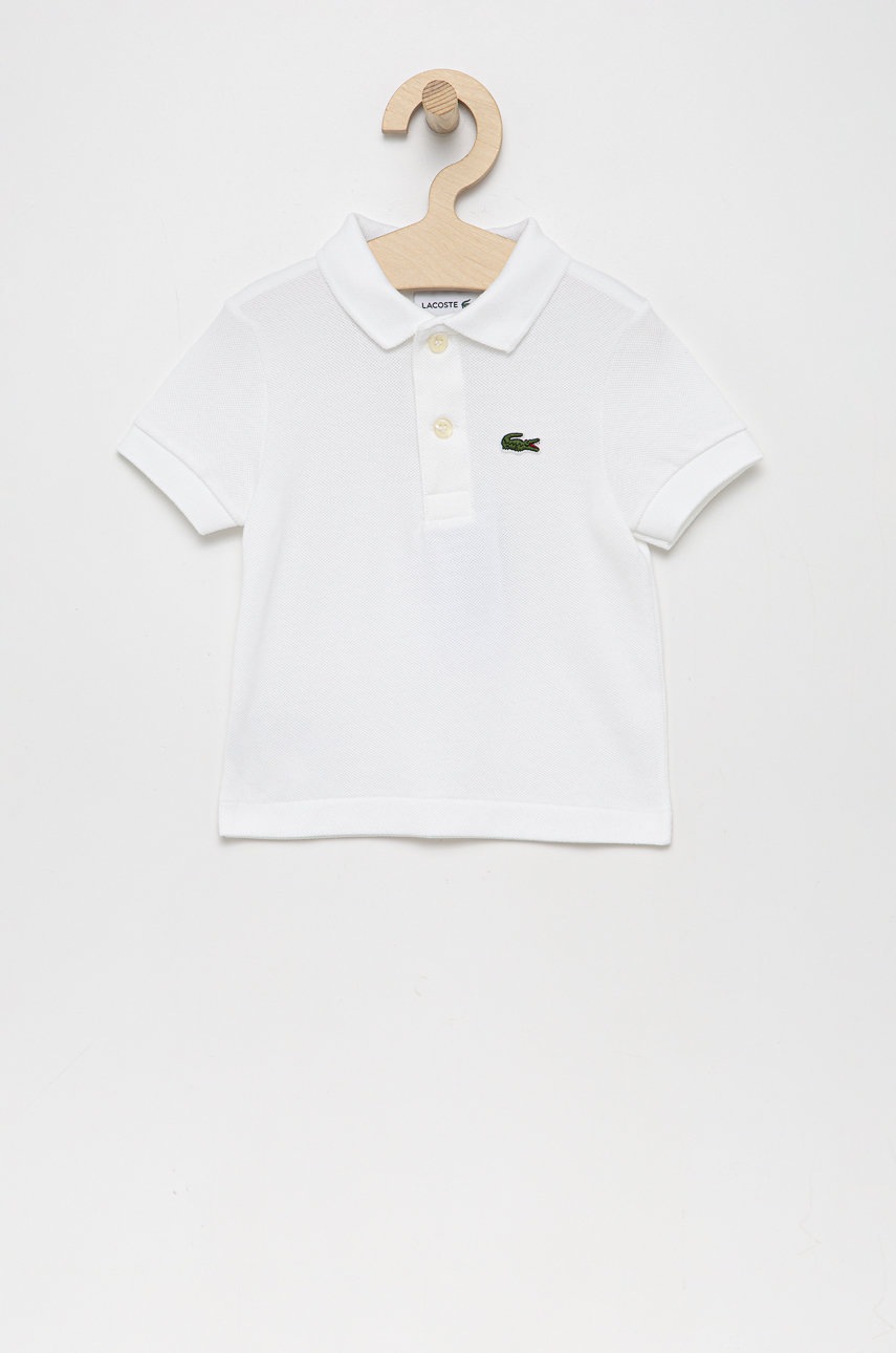 Lacoste tricouri polo din bumbac pentru copii culoarea alb, neted