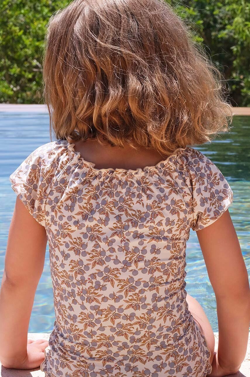 Costum de baie intreg copii din colectia Konges Sløjd. Model confectionat din material ornamentat.