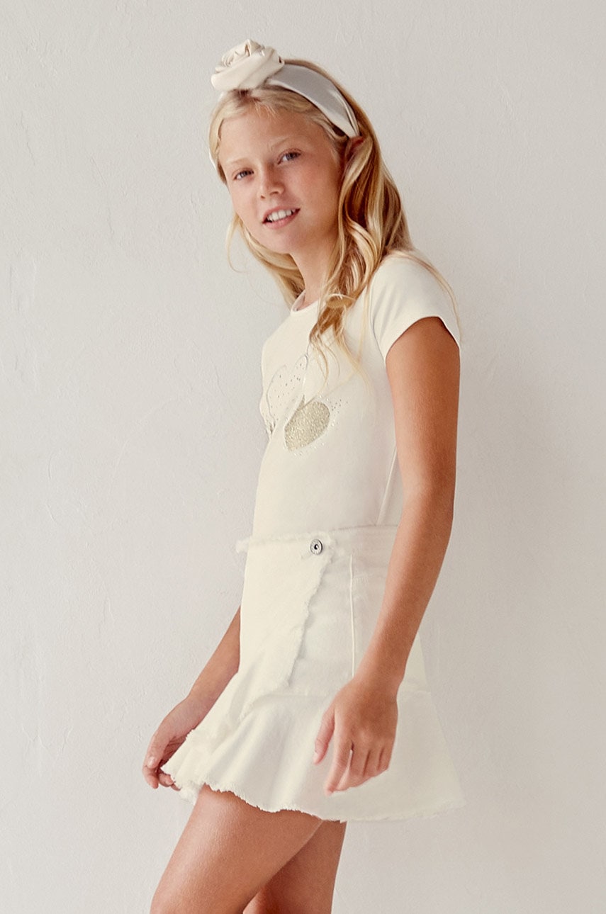 Fusta pentru copii din colectia OVS. Model croiala in clos, confectionat din material tul.