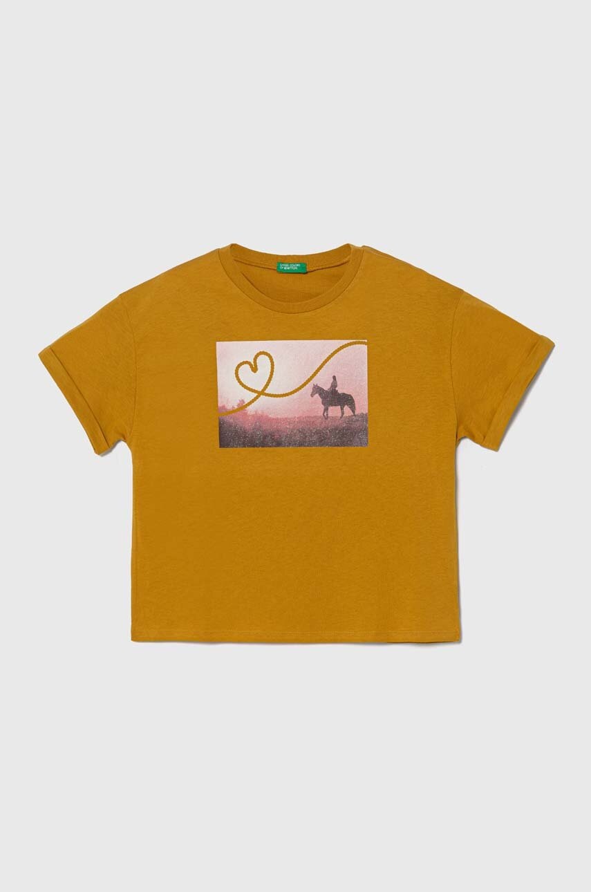 United Colors of Benetton tricou de bumbac pentru copii culoarea galben