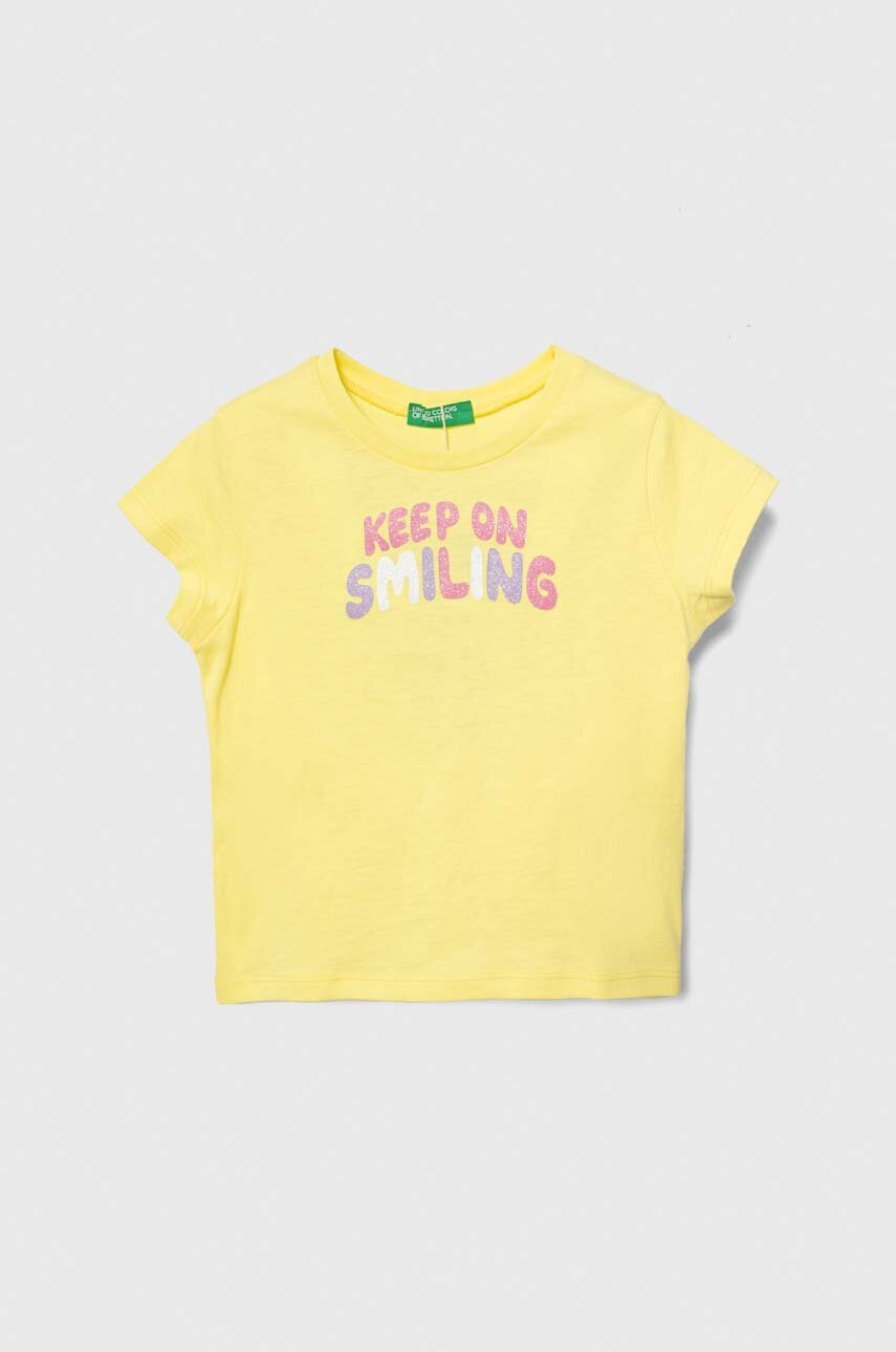 United Colors of Benetton tricou de bumbac pentru copii culoarea galben