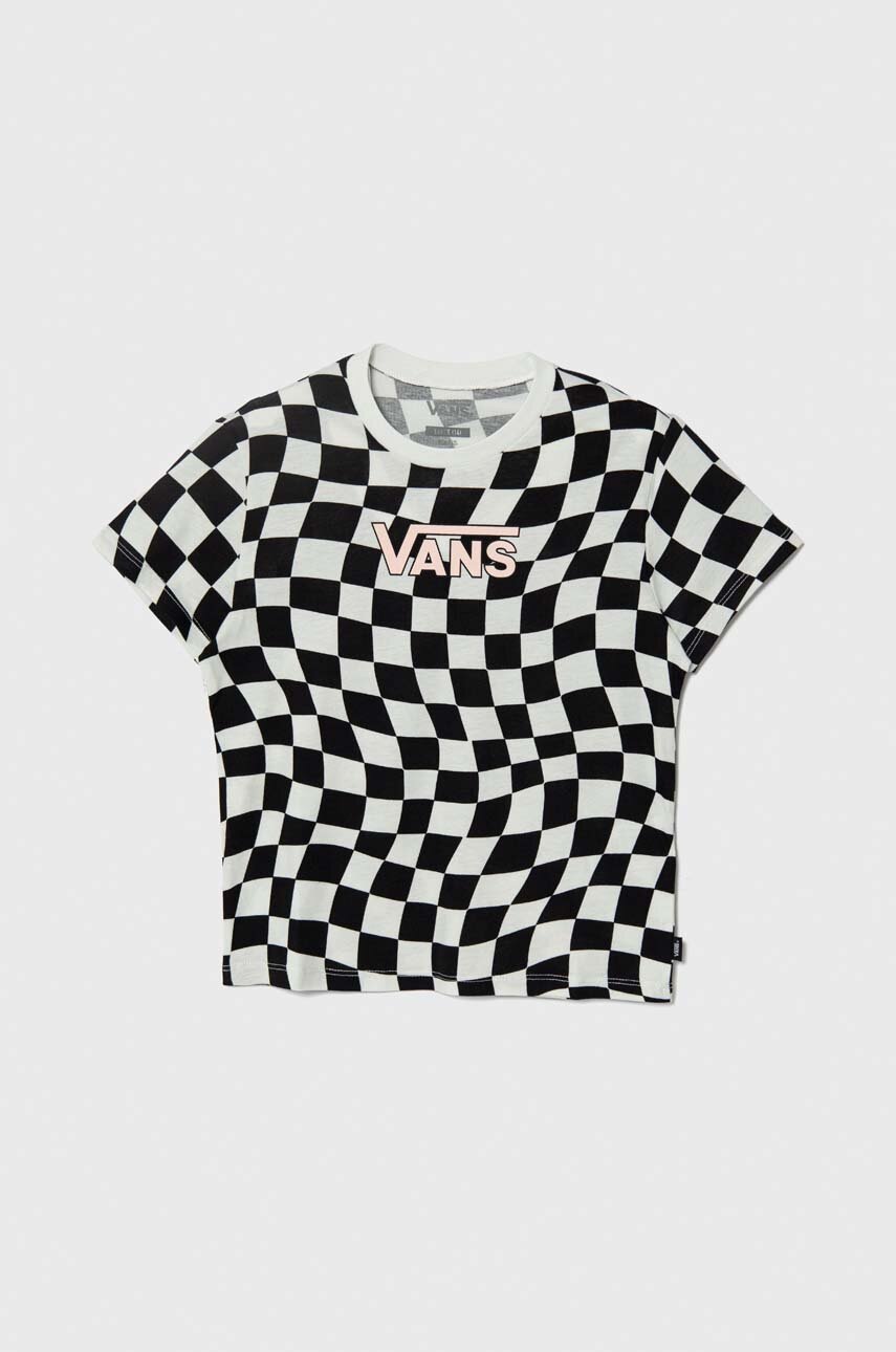 Vans tricou de bumbac pentru copii WARPED 66 CHECK CREW culoarea negru
