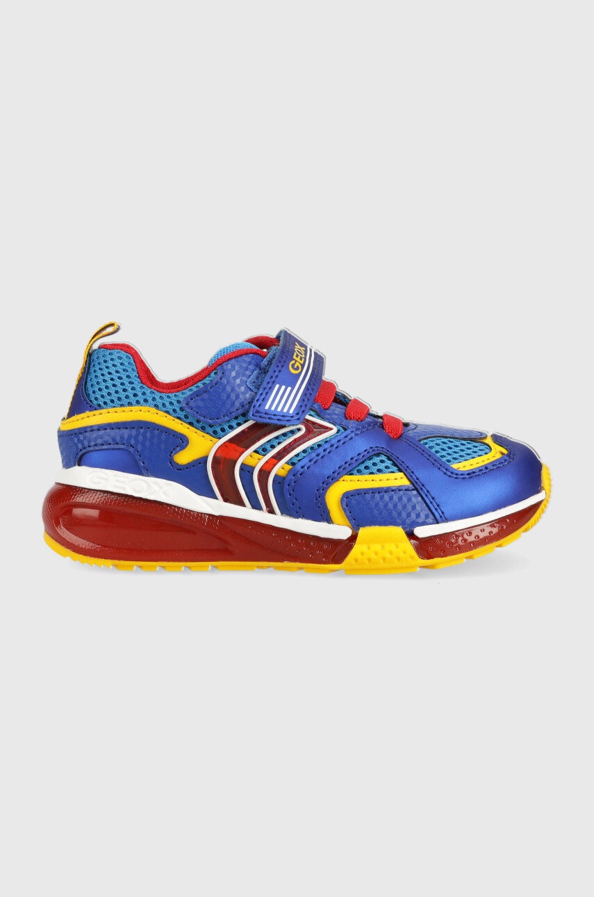 Sneakers copii din colecția Geox. Model confecționat combinatia materialului textil cu pielea ecologica.