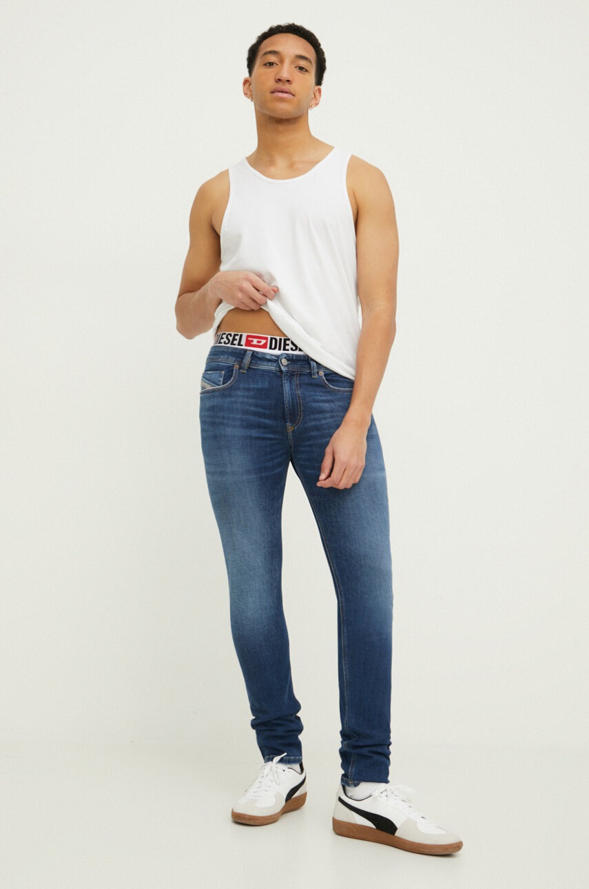Jeansi din colectia Diesel cu fason skinny cu talia joasa. Model confectionat din denim foarte flexibil.