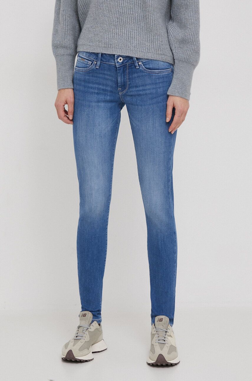 Jeansi din colectia Pepe Jeans cu fason skinny cu talia joasa. Model confectionat din denim spalacit.