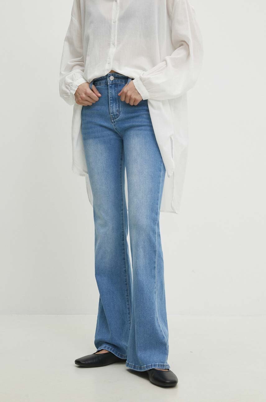 Jeansi din colectia Answear Lab cu fason flare cu talia inalta. Model confectionat din denim spalacit. Material flexibil, confortabil.