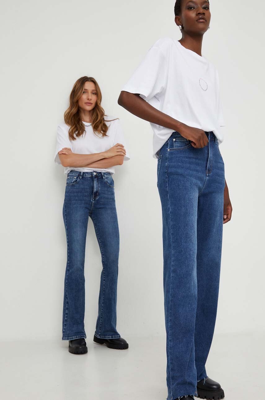 Jeansi din colectia Answear Lab cu fason flare cu talia inalta. Model confectionat din denim elastic.