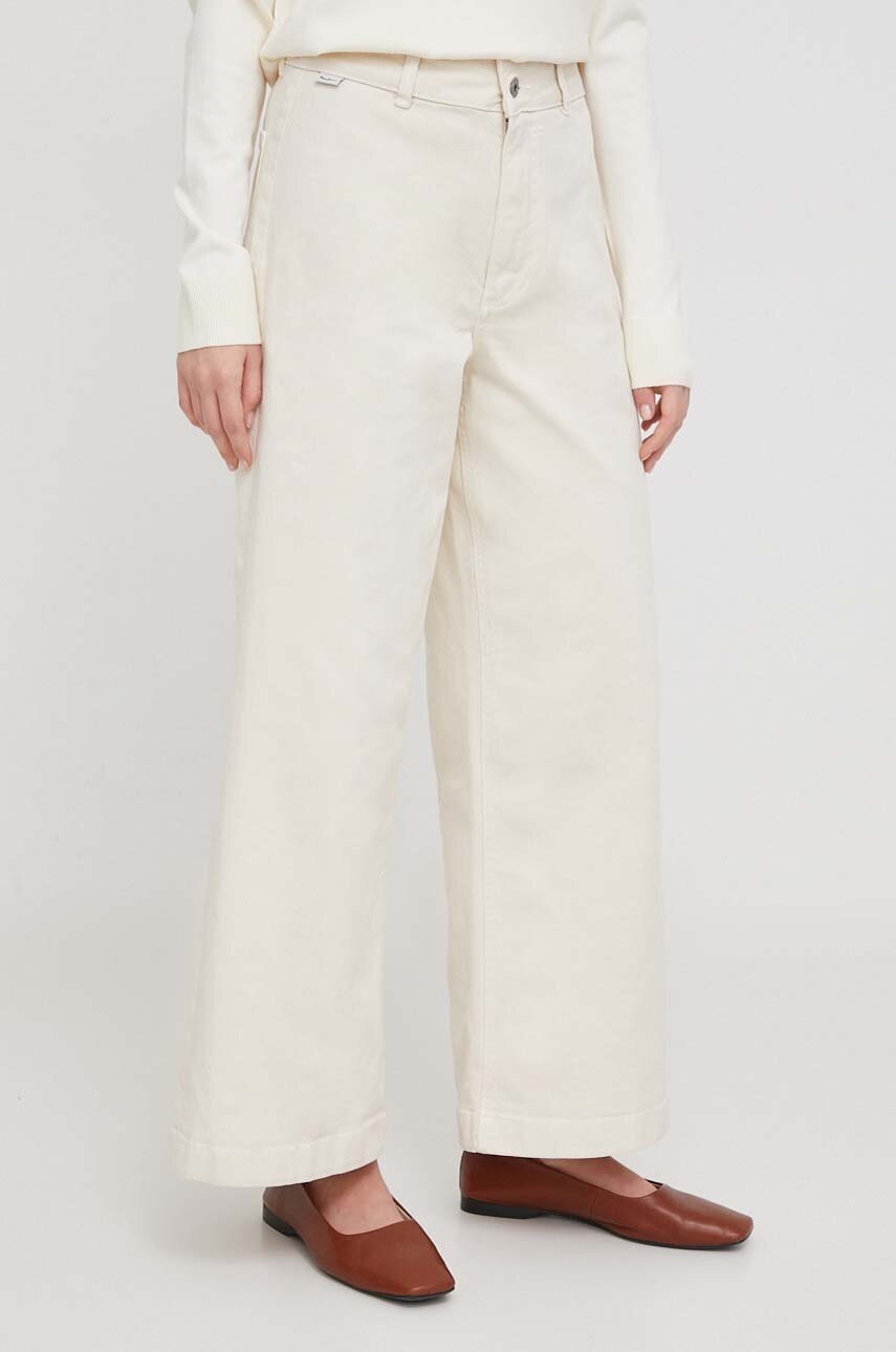 Jeansi din colectia Pepe Jeans cu fason wide leg cu talia inalta. Model confectionat din denim din material rigid.