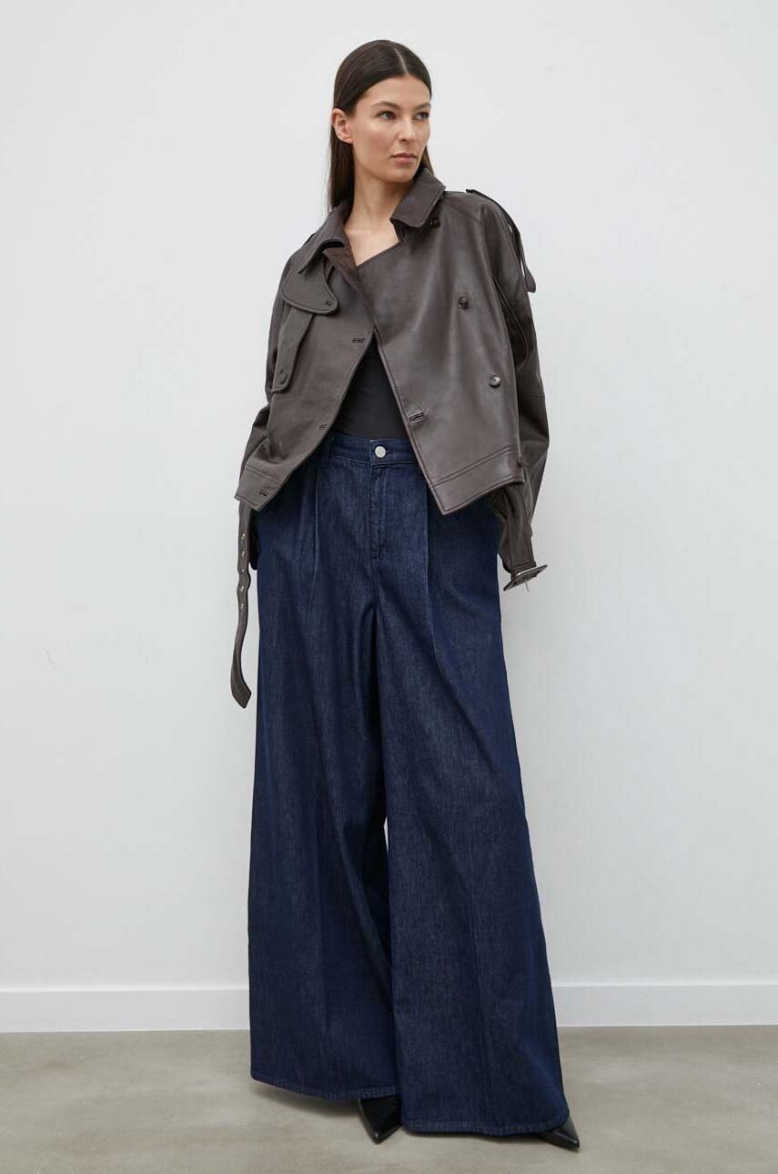 Jeansi din colectia Theory cu fason wide cu talia inalta. Model confectionat din denim ceruit.