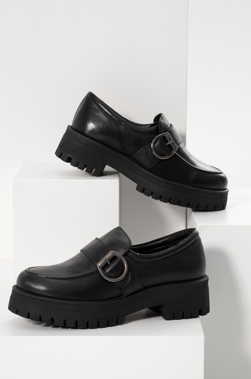 Answear Lab mocasini de piele femei, culoarea negru, cu platforma