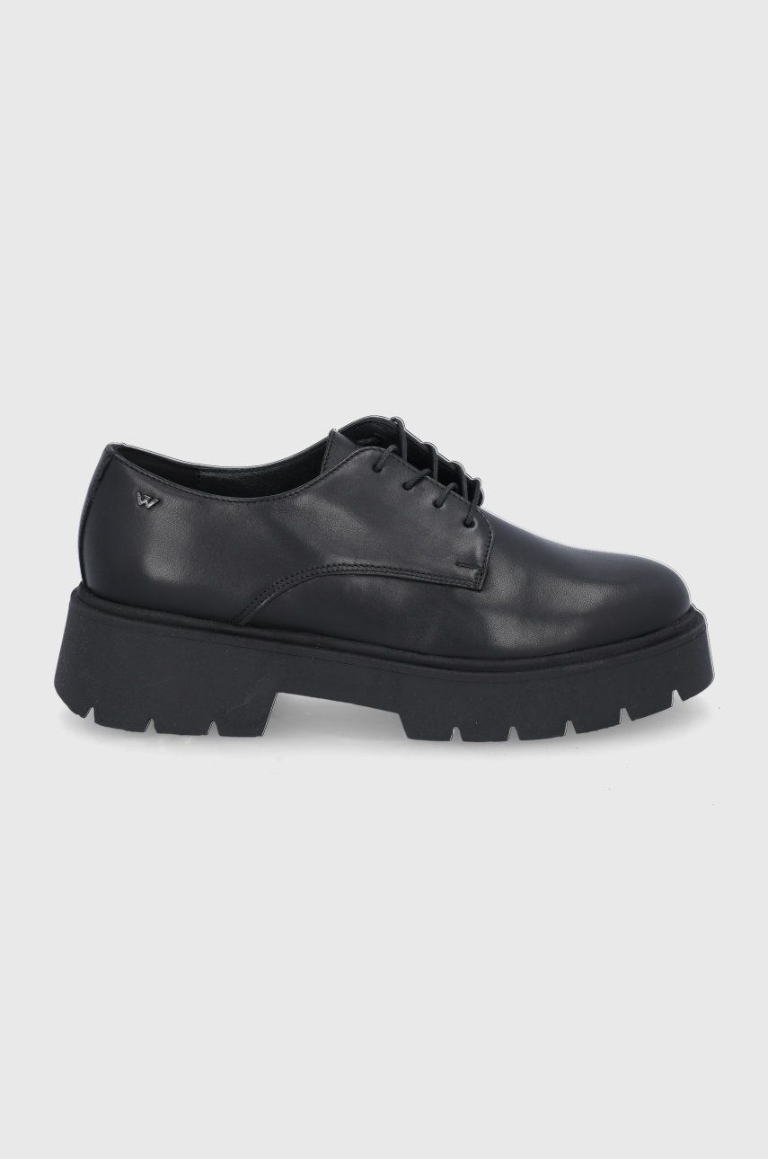 Wojas Pantofi de piele femei, culoarea negru, cu platformă