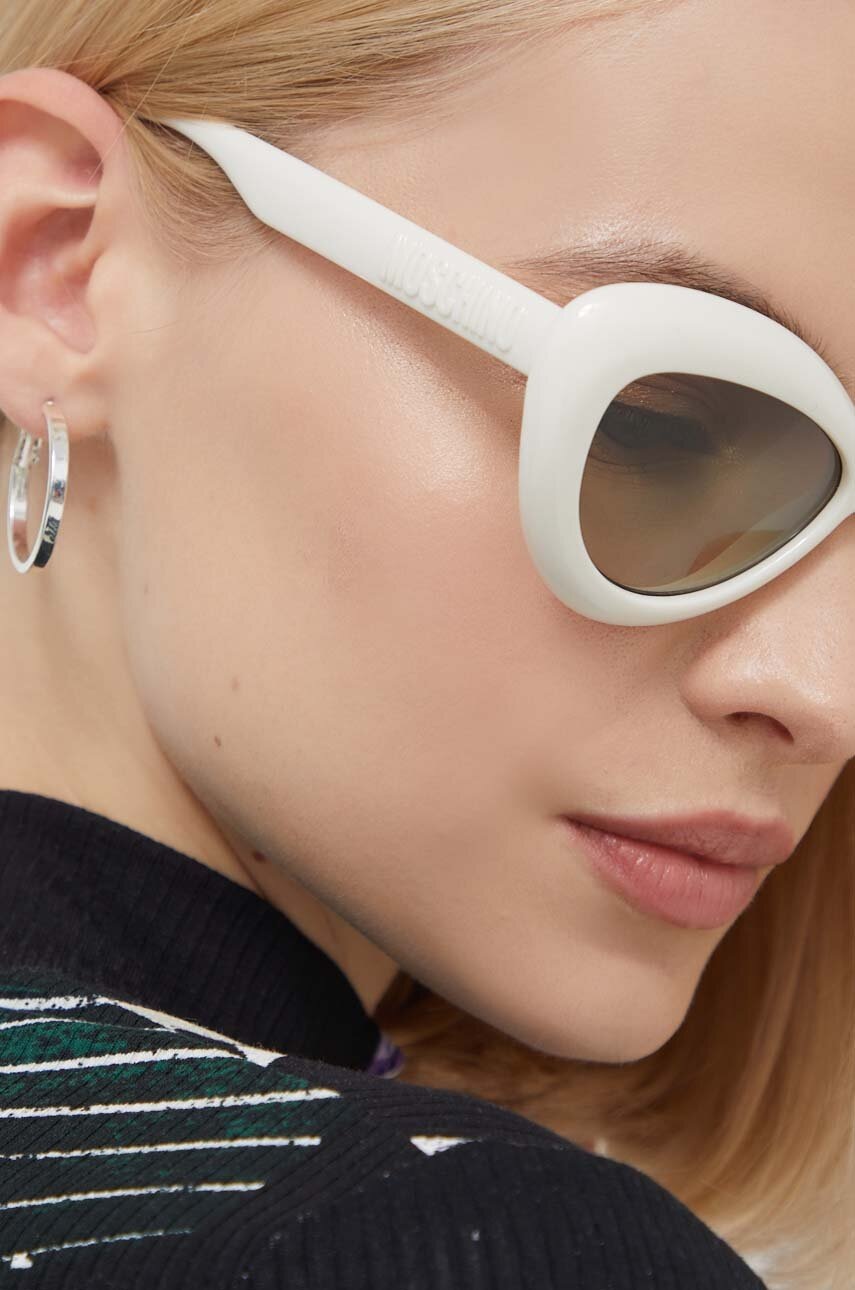 Ochelari de soare din colectia Moschino. Model cu lentile netede si rame din plastic. Are filtru UV 400.