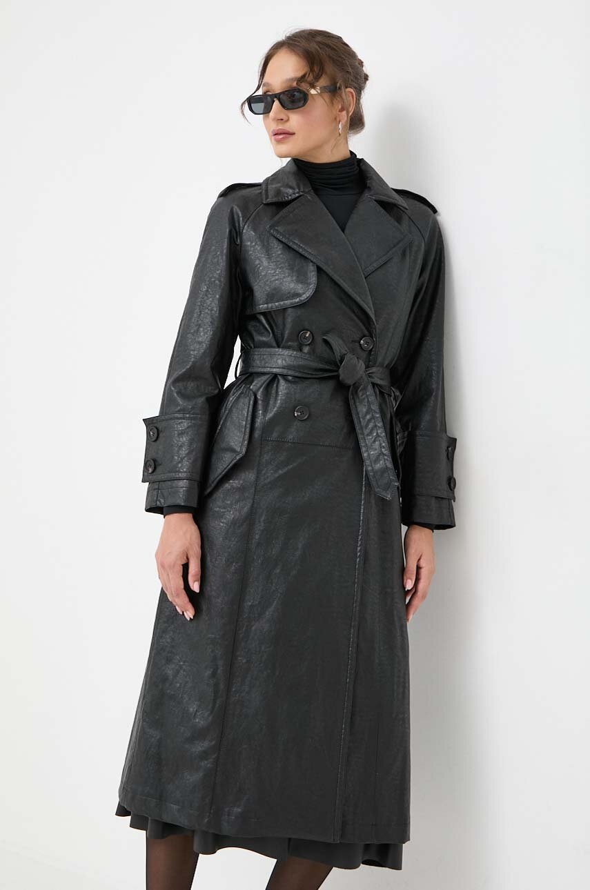Beatrice B trenci femei, culoarea negru, de tranzitie, cu doua randuri de nasturi