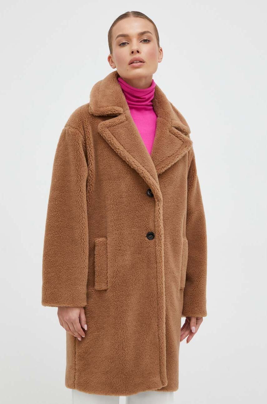 Marella palton din lana culoarea maro, de tranzitie, oversize