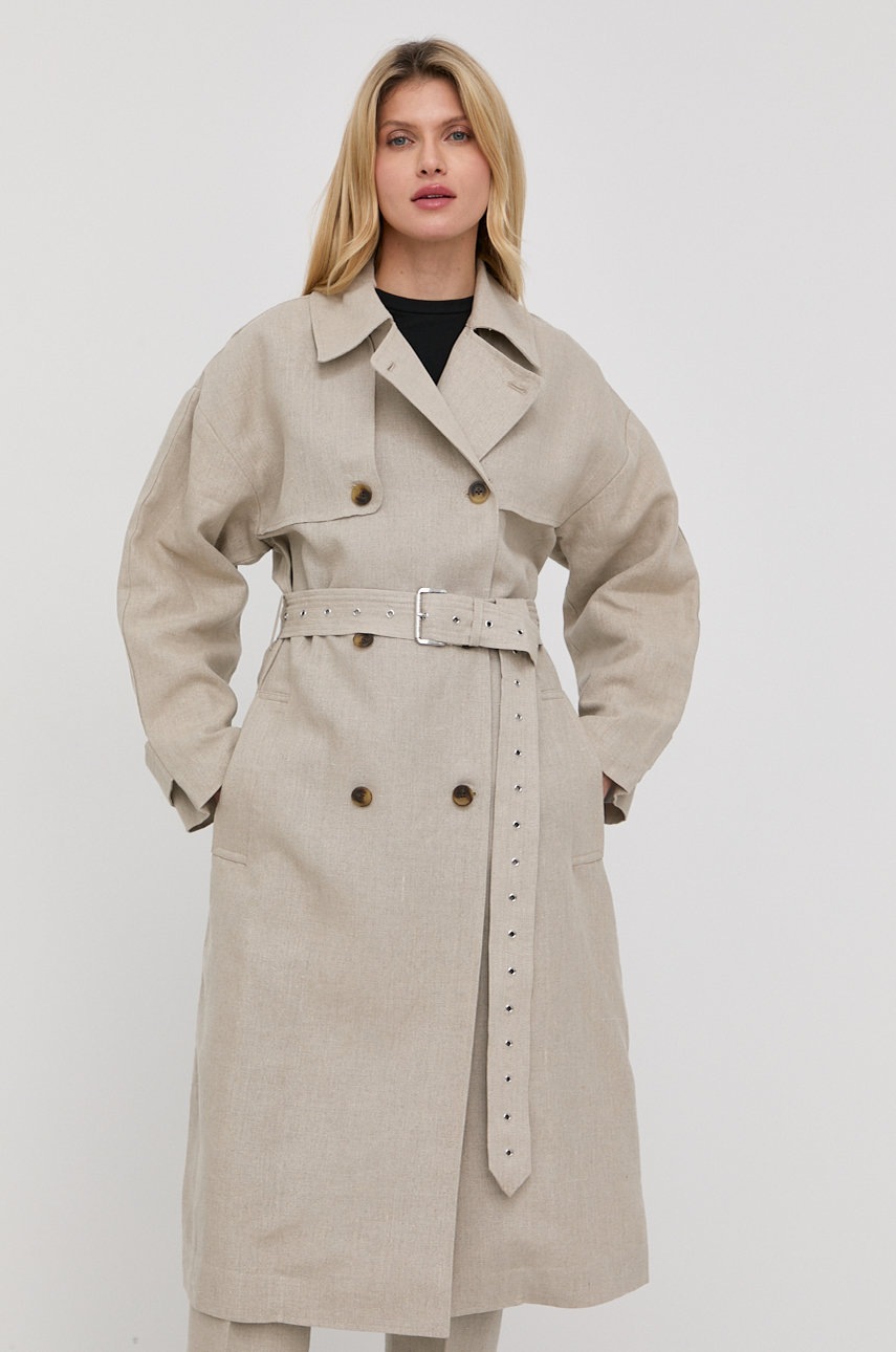 Victoria Beckham palton femei, culoarea bej, de tranzitie