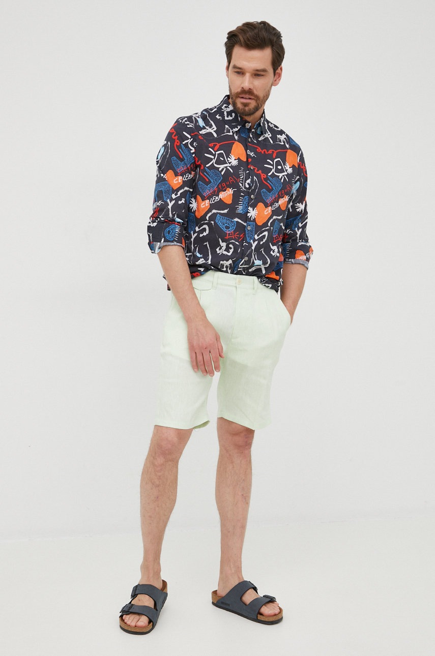 Drykorn pantaloni scurti din in barbati, culoarea verde
