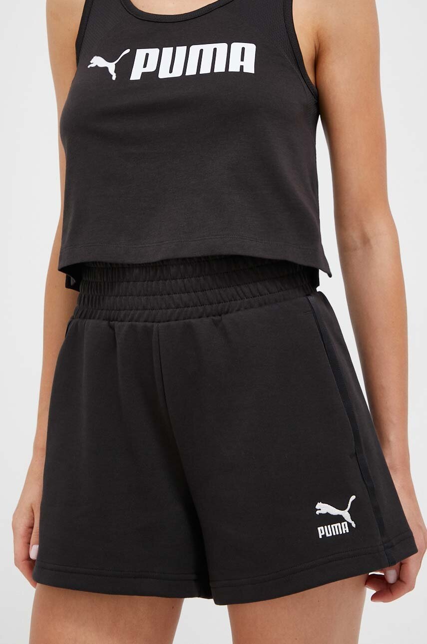 Puma pantaloni scurti femei, culoarea negru, neted, high waist