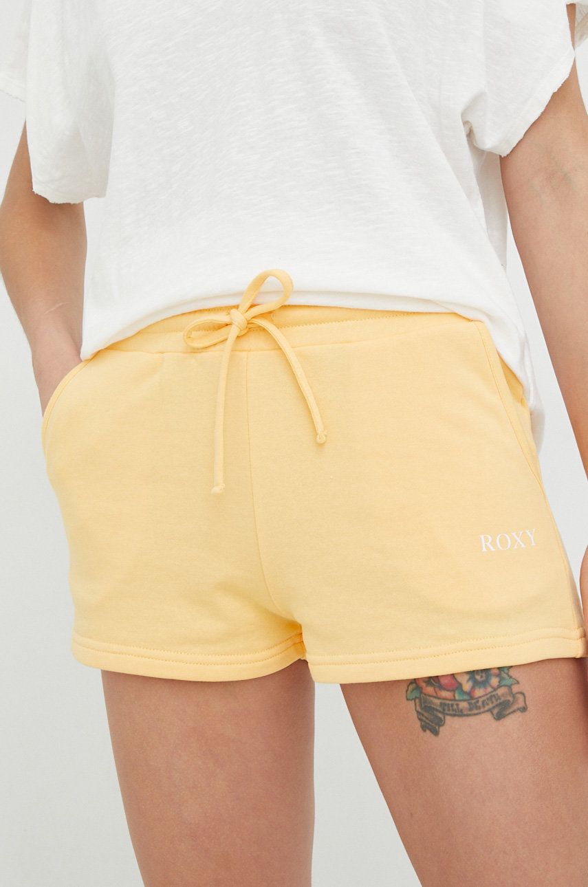 Roxy pantaloni scurti femei, culoarea galben, neted, medium waist