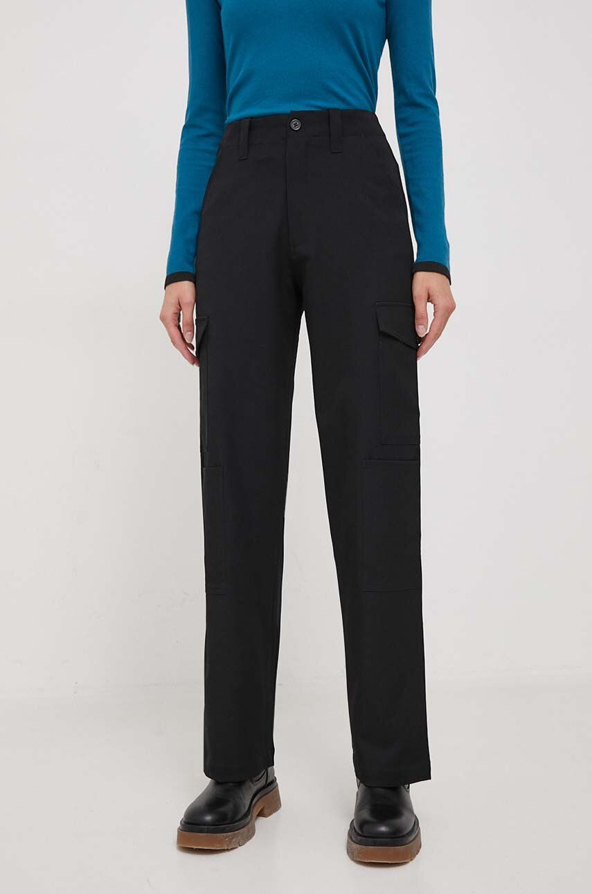 Desigual pantaloni femei, culoarea negru, lat, high waist