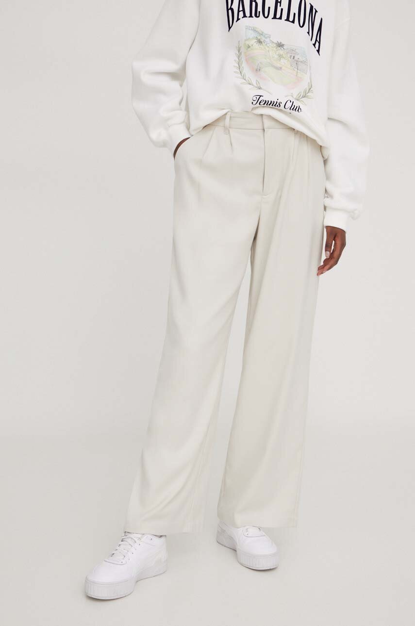 Hollister Co. pantaloni femei, culoarea bej, drept, high waist
