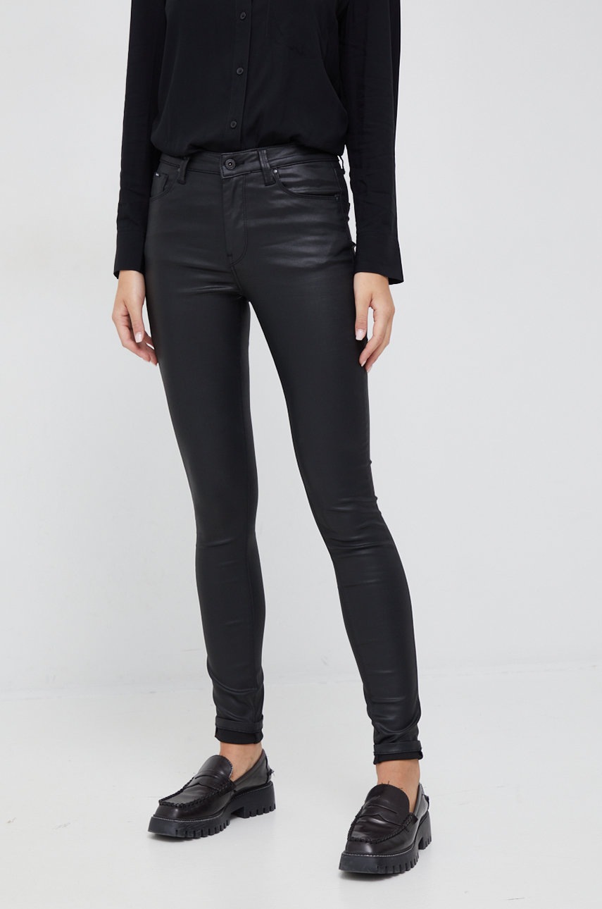 Pepe Jeans pantaloni femei, culoarea negru, mulata, high waist
