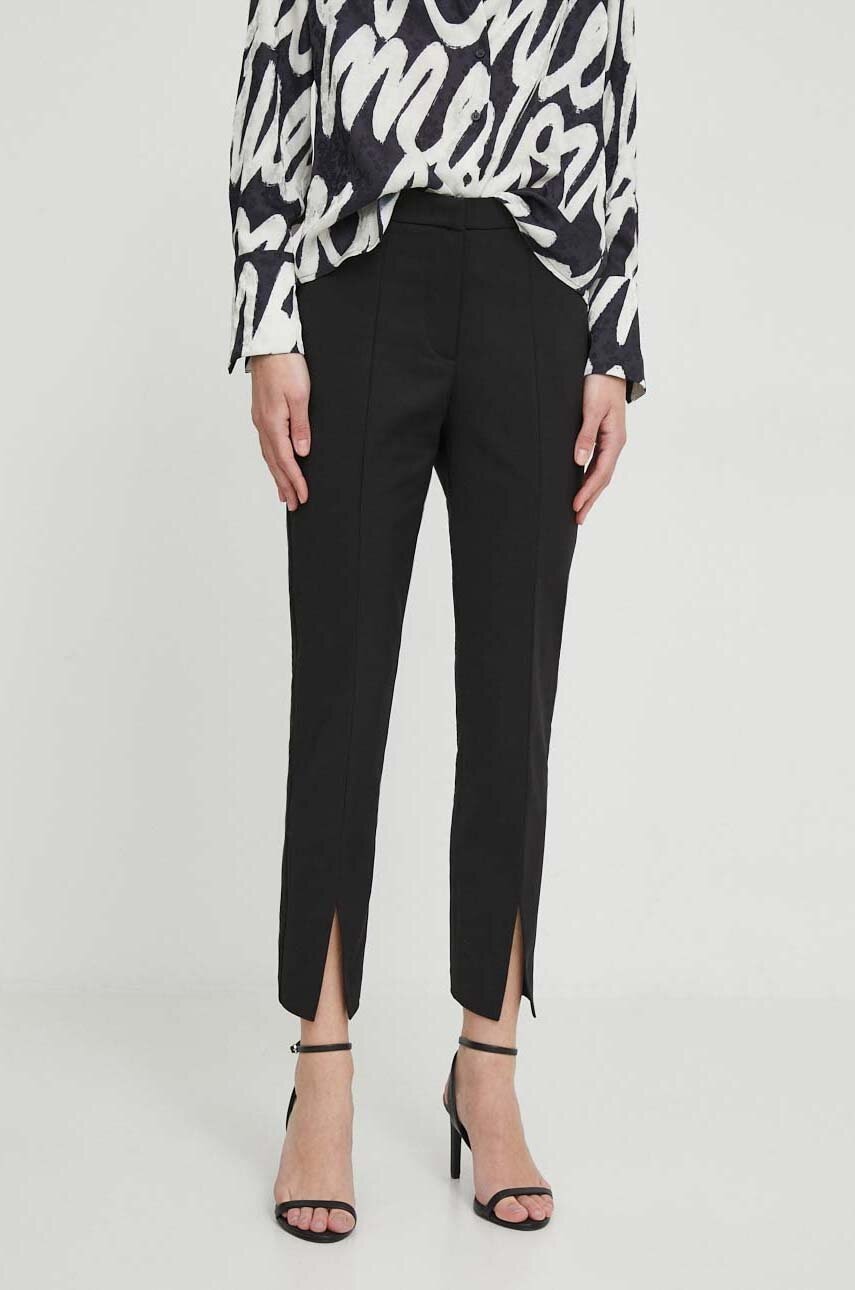 Sisley pantaloni femei, culoarea negru, mulata, high waist