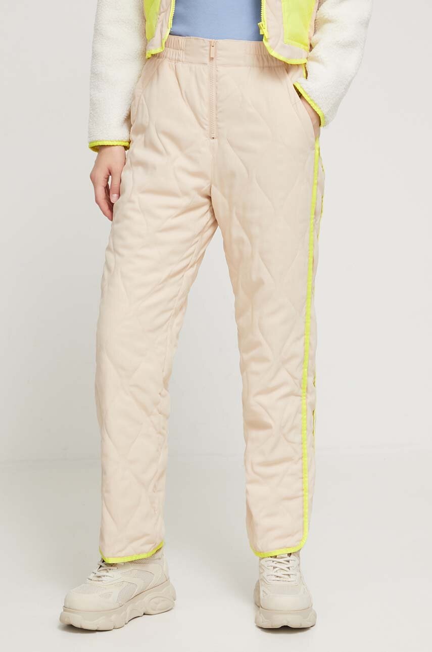 UGG pantaloni femei, culoarea bej, drept, high waist