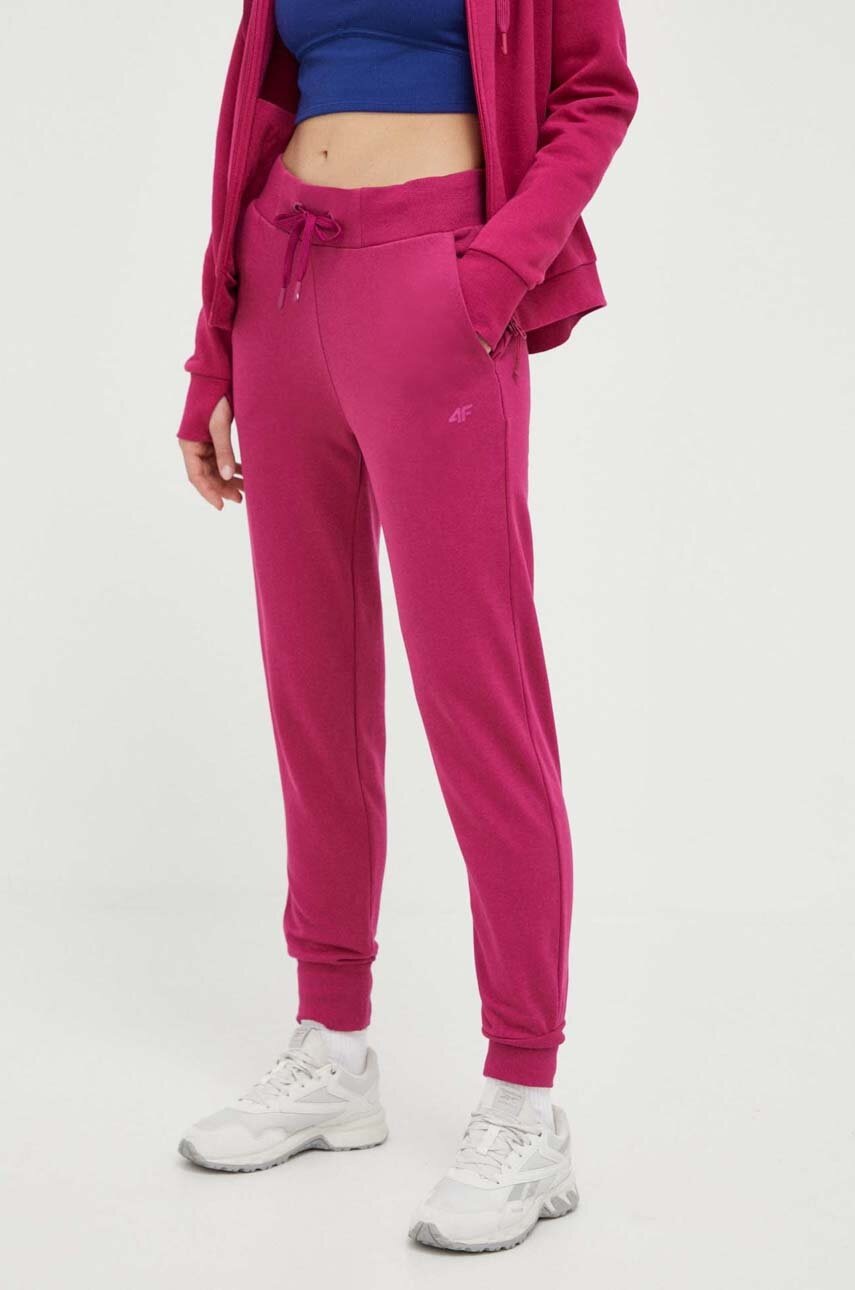 4F pantaloni de trening culoarea violet, neted