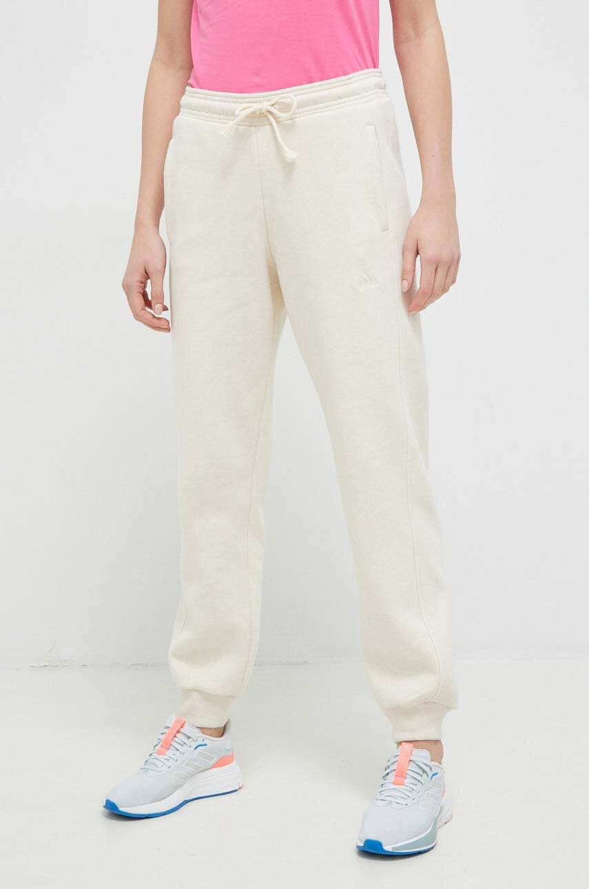adidas pantaloni de trening culoarea bej, neted
