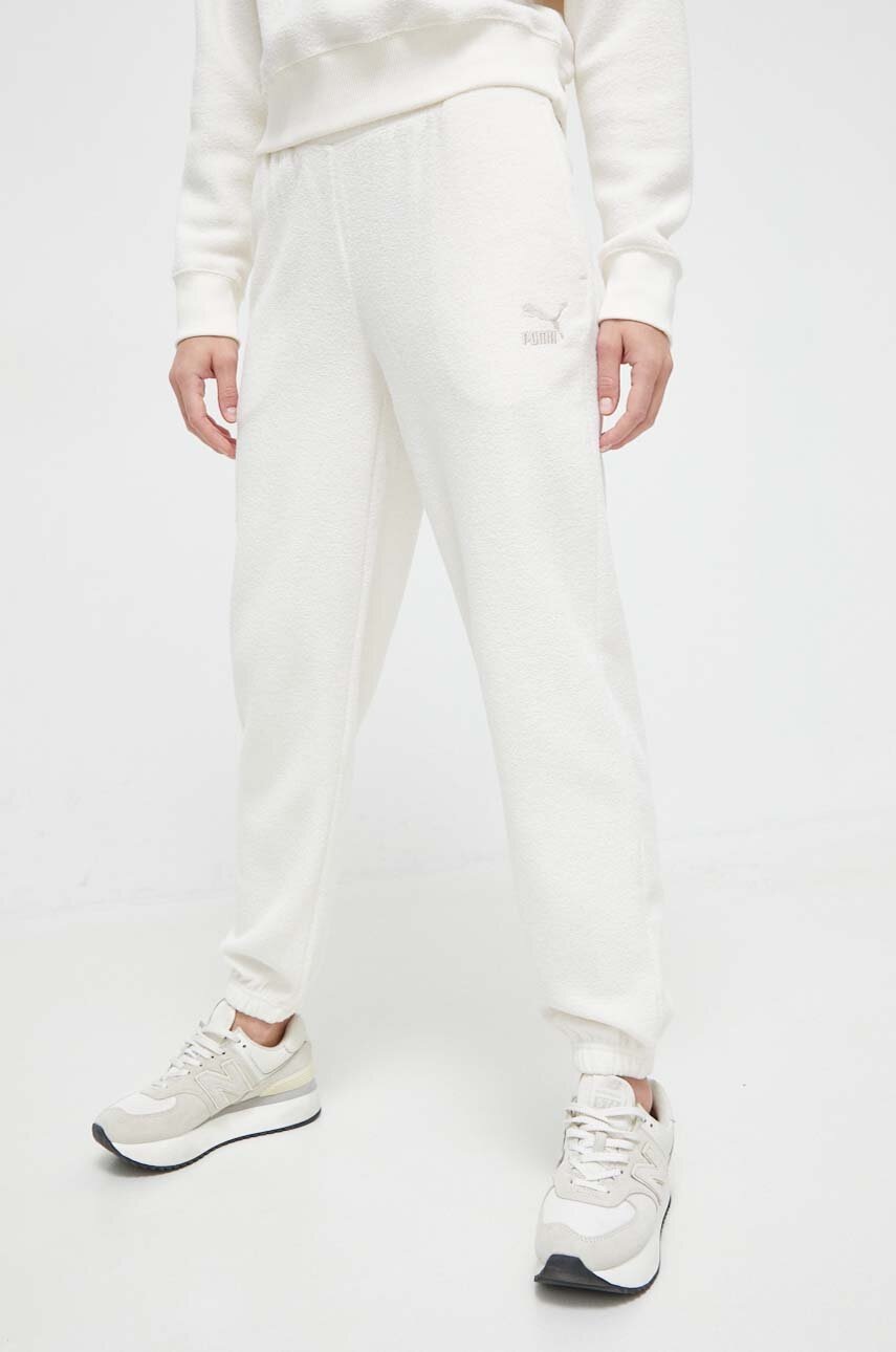 Pantaloni de trening din colecția Puma confecționat din tricot neted. Modelul cu mijloc moale căptușit oferă protecție și crește confortul în timpul utilizării.
