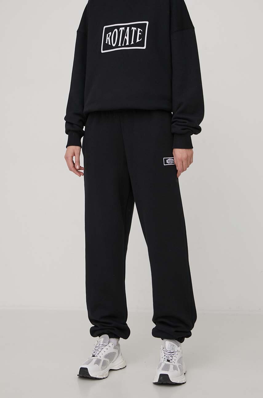 Rotate pantaloni de trening din bumbac culoarea negru, neted