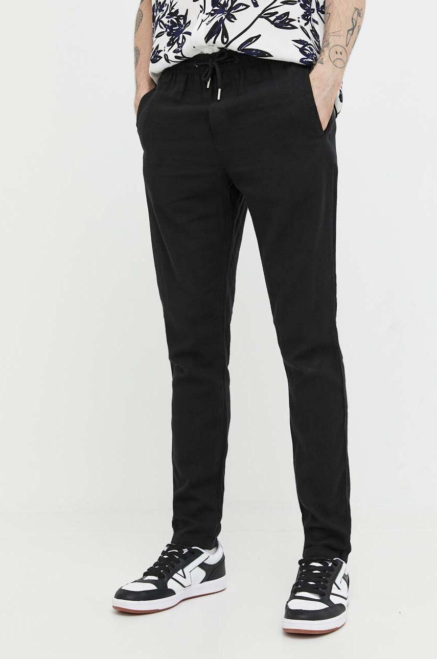 Solid pantaloni din in culoarea negru, mulata