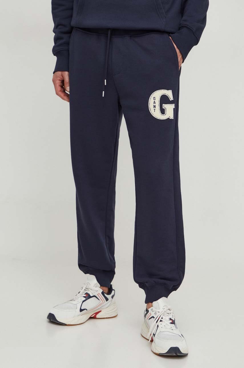 Gant pantaloni de trening culoarea albastru marin, cu imprimeu