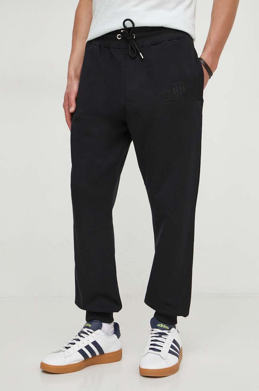 Gant pantaloni de trening din bumbac culoarea negru, neted