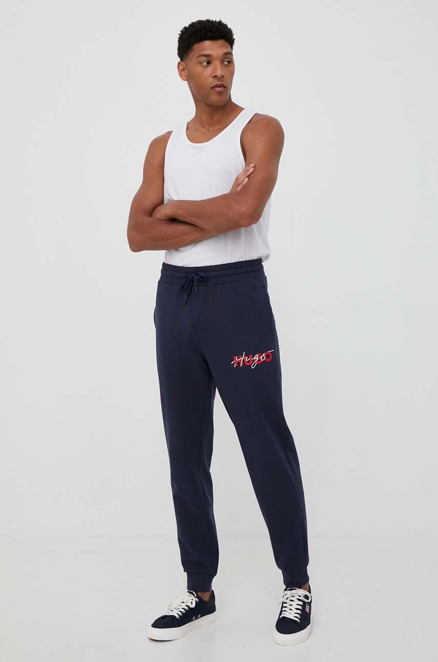 HUGO pantaloni lounge din bumbac culoarea albastru marin, cu imprimeu
