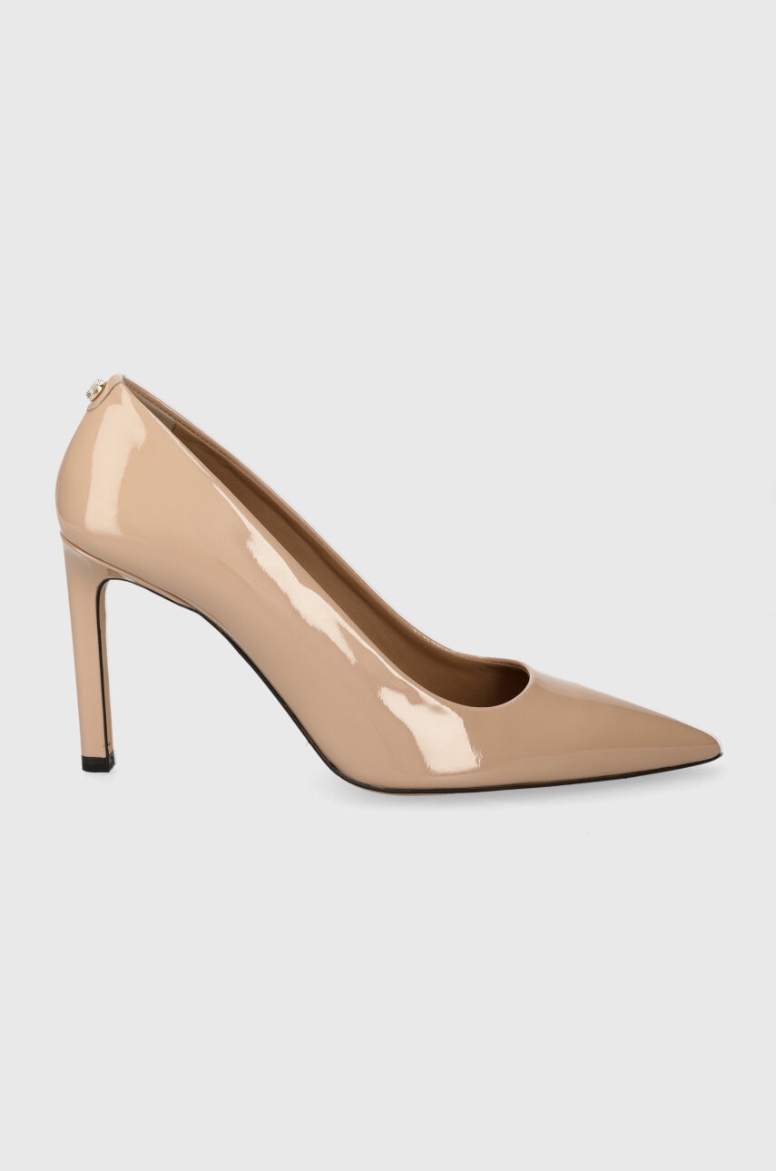 BOSS stilettos de piele Janet culoarea bej, 50504634