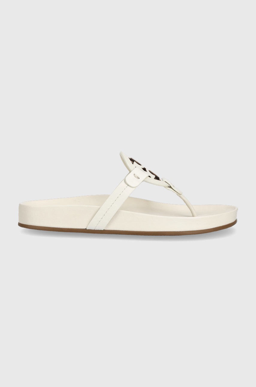 Tory Burch slapi de piele Miller femei, culoarea alb, cu toc plat