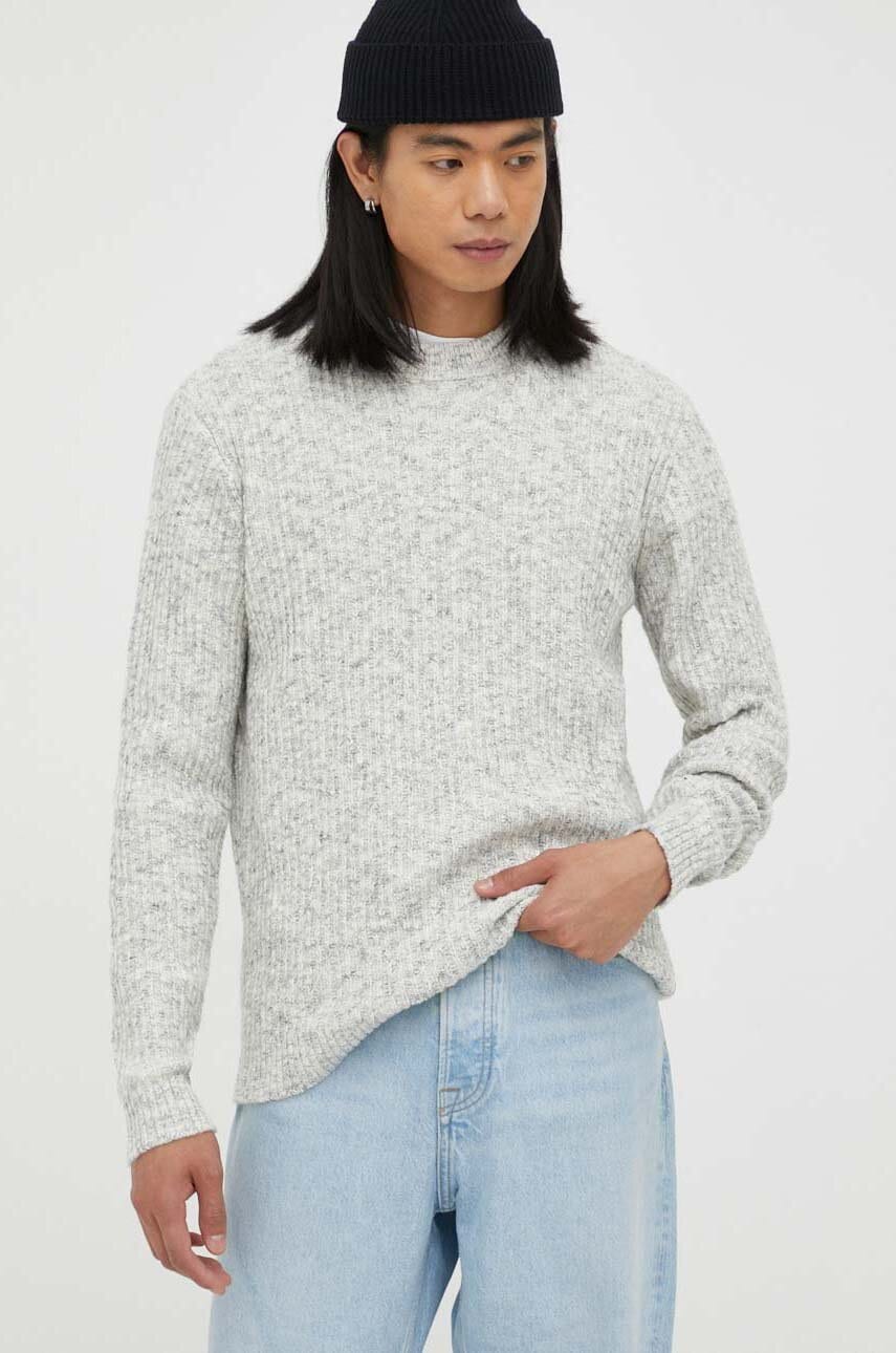 Bruuns Bazaar pulover Waf Luke barbati, culoarea gri