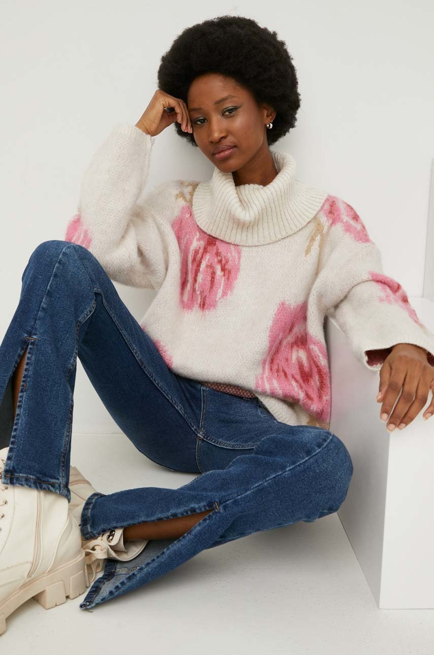 Pulover din colectia Answear Lab. Model cu guler pe gat confectionat din tricot ornamentat.
