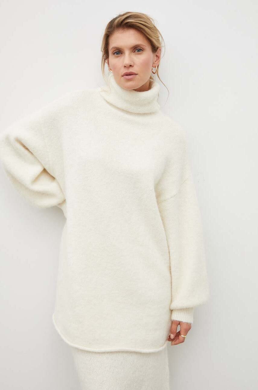 Gestuz pulover de lana femei, culoarea bej, călduros, cu guler