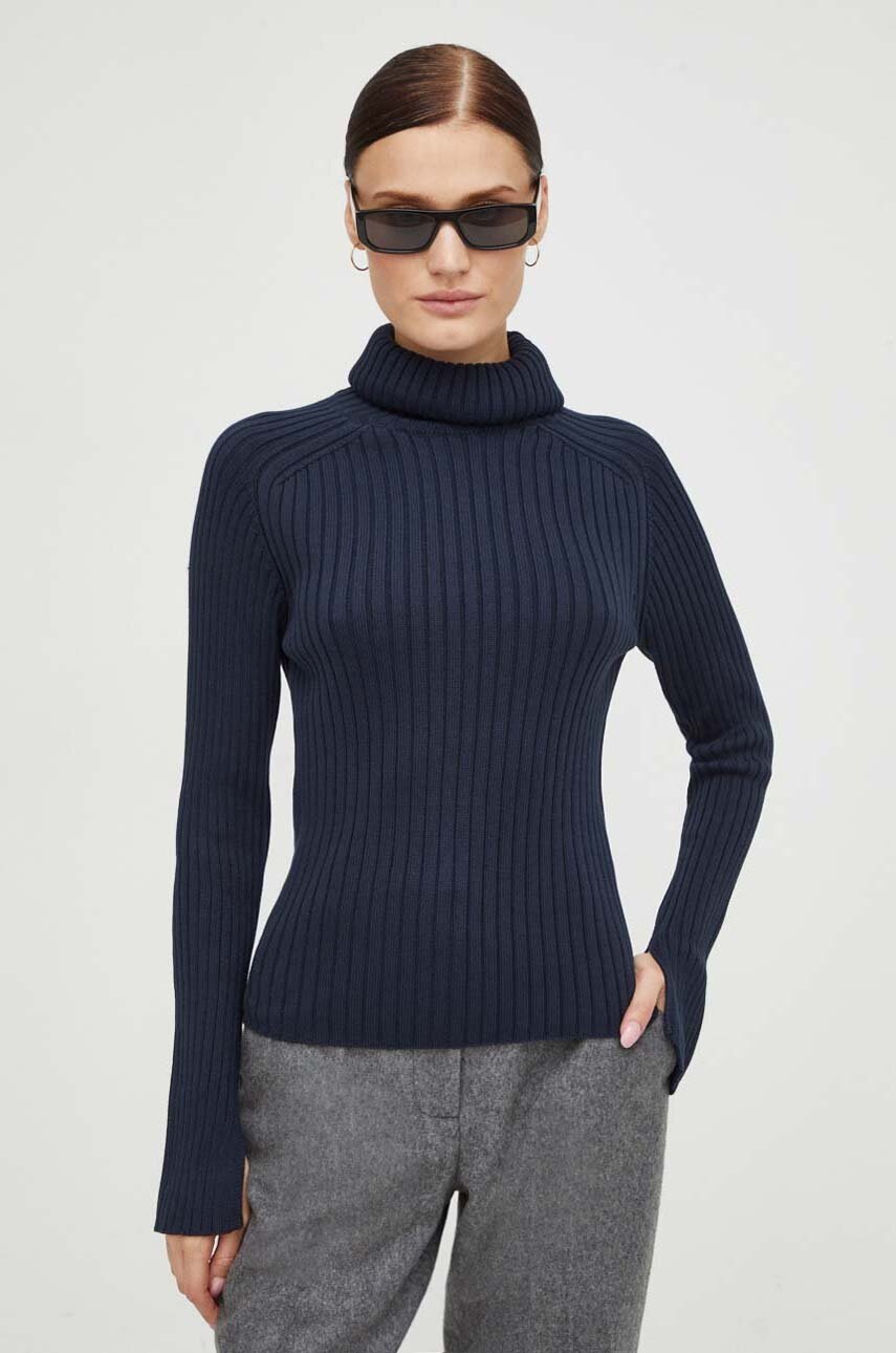 Marc O’Polo pulover de bumbac culoarea albastru marin, cu guler