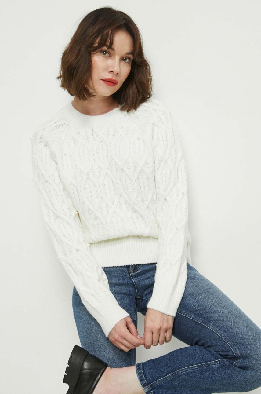 Pulover din colectia Medicine. Model cu decolteu rotund confectionat din tricotaje cu țesătură decorativă.